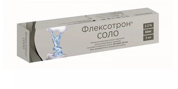 Флексотрон Соло средство для внутрисуставного введения шприц 22мг/мл, 2,2% 3,0мл шприц 1шт в наличии. Узнайте, как купить товар с бесплатной доставкой по Сочи, Сочинскому городскому округу на странице «