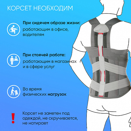 Оказывает «дисциплинирующее» действие без опасности развития мышечной гипотрофии, формирует стереотип правильной осанки.