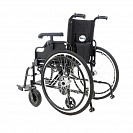Складная алюминиевая рама.Трансферные колеса.Откидные подлокотники с регулировкой по высоте.Откидные подножки.Съемные антиопрокидыватели.Широкие передние колеса.Карман на спинке для вещей.
