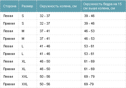 Размер коленного ортеза выбирают в зависимости от окружности колена и бедра на 15 см выше колена.