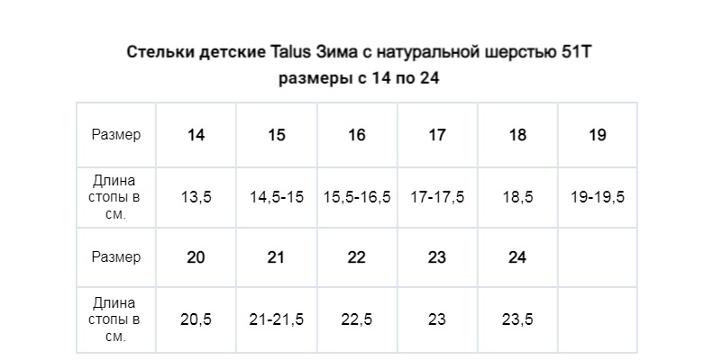 Стельки ортопедические Talus детские Зима с натуральной шерстью 51Т в наличии. Узнайте, как купить товар с бесплатной доставкой по Сочи, Сочинскому городскому округу на странице «